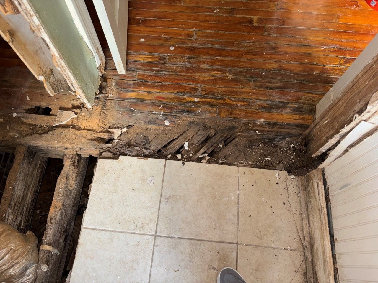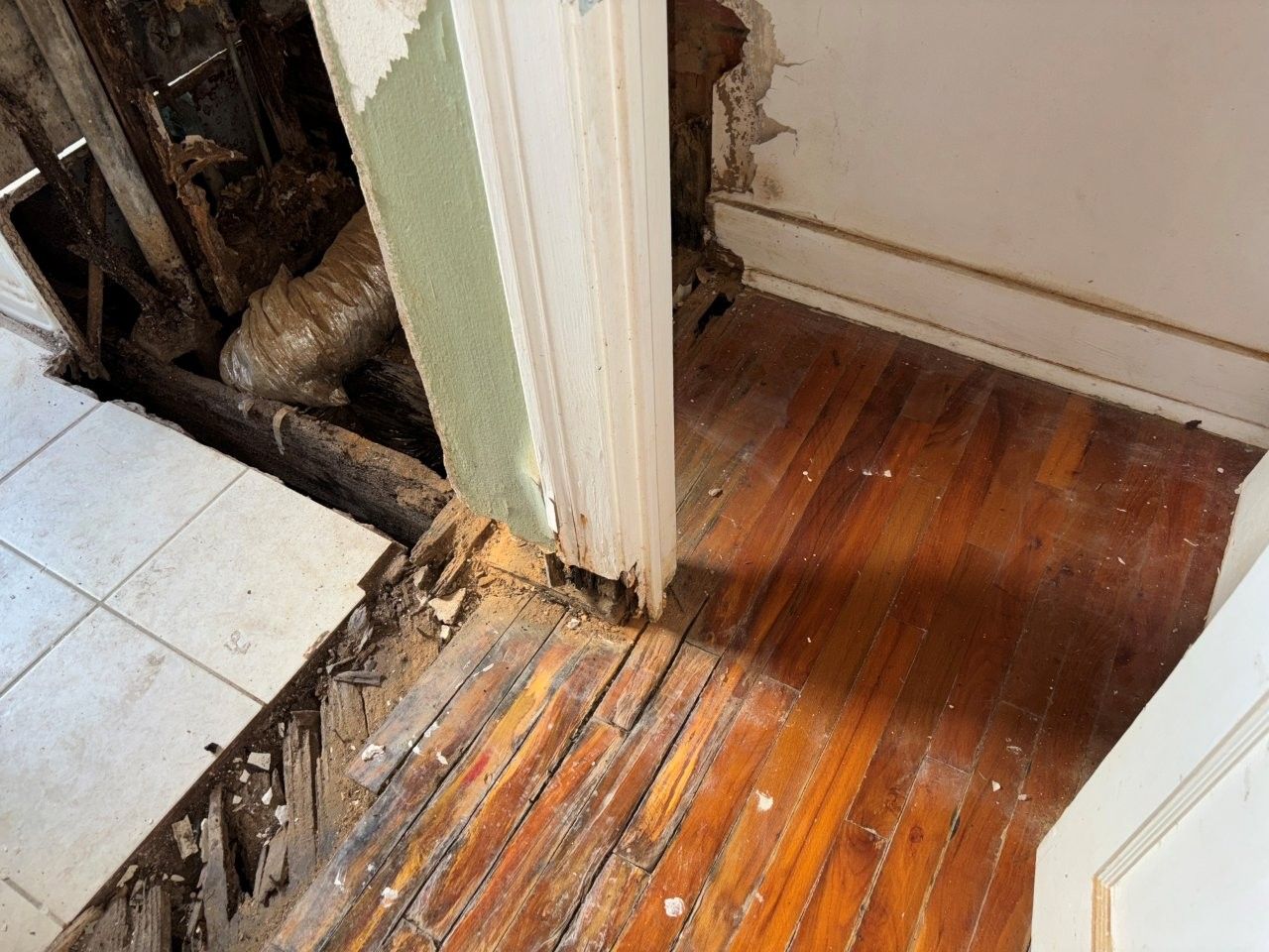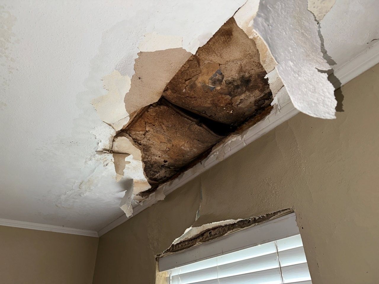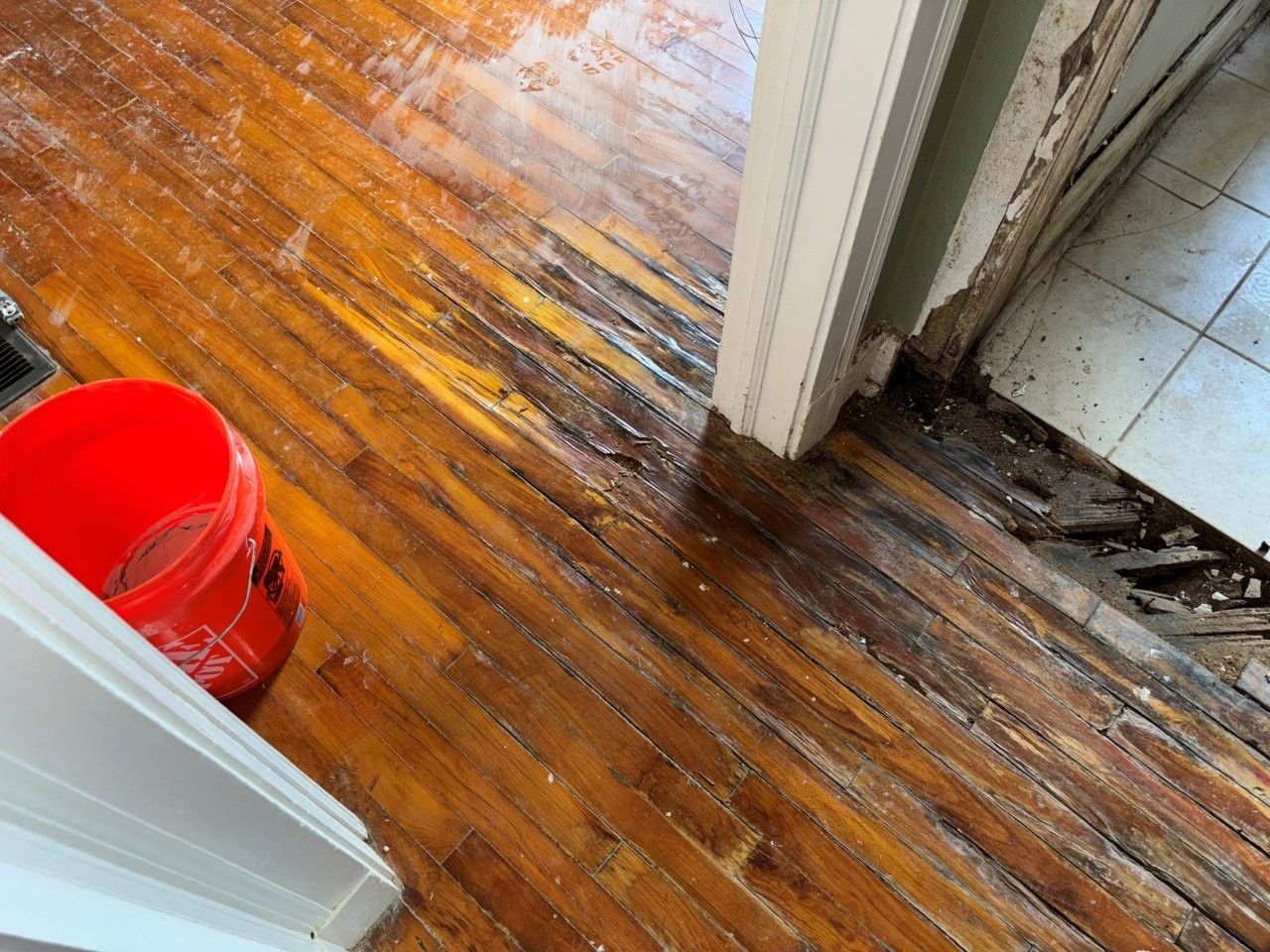 damaged the ceiling, walls, and flooring.