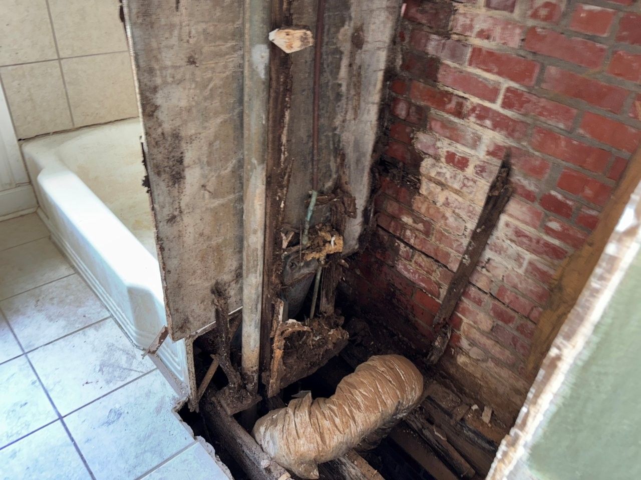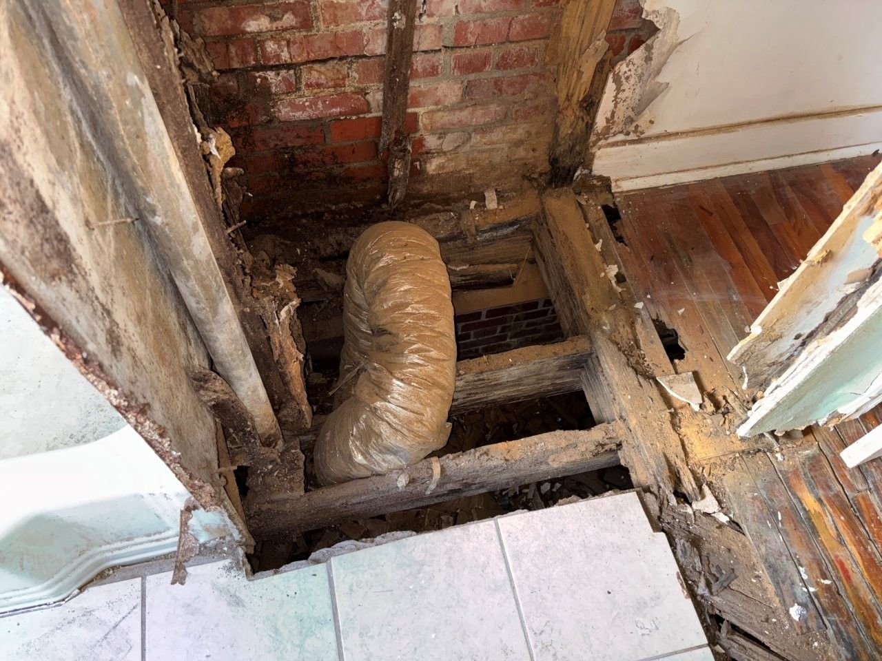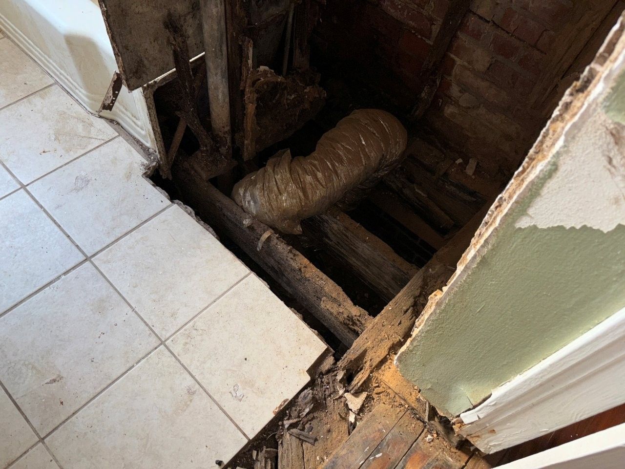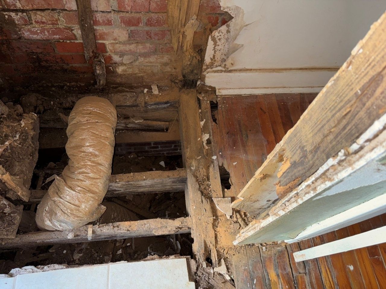 damaged the ceiling, walls, and flooring.